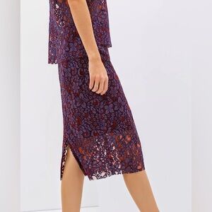 -Zara -Purple & Red -Lace Crochet Pencil Skirt -Size medium -Lined skirt -Sheer at bottom
