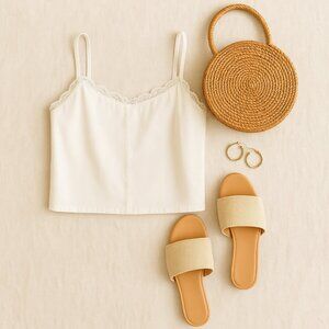 🌸 Beautiful Zara lace trim cami top in off-white. Fitted silhouette with delicate straps and soft lace edging—perfect for layering or wearing on its own for an effortlessly chic look.