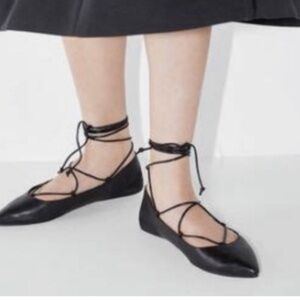 Beautiful lace up, vegan leather ZARA ballet flats with a soft back, split sole, and faux snake animal print insoles. An amazing quality with gorgeous ankle tie-up fastening and pointed toe.