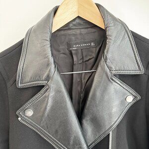 Zara Lambskin Leather and Wool Moto Coat in Black Large