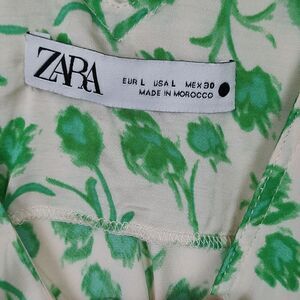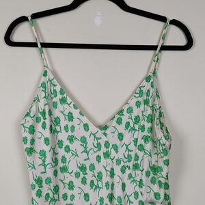 Zara Lara Floral Midi Slip Dress in cream and green floral. Double v neckline with a curve defining seam that goes from the right shoulder across the chest and around the back to the right bottom hem to give a pretty silhouette. Silky soft 100% viscose. Size Large.