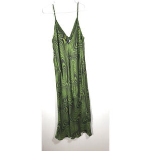 Zara Lara Maxi Slip Dress Green Black Marble Satin Size Large Fairygoth New