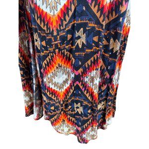 Zara Large Bohemian Beach Maxi Dress Deep V-Neck Aztec Print Tie-Back Sleeveless