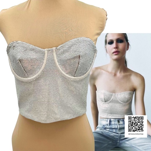 Zara (Large - NWT) Champagne Sequin Corset Top