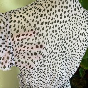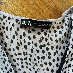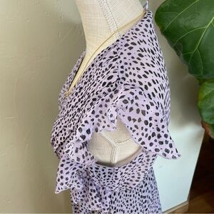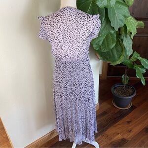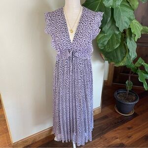 Zara lilac midi dress. Super cute with chiffon pleats and ruffles. Fully lined in front and the skirt, the back is sheer. Deep V neck. Small snag on left side. Flowy and fun. Please see photos for details and do not hesitate to ask questions!