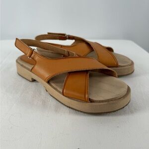 Zara Leather Criss Cross Strap Sandal in Brown Size 6 or 36