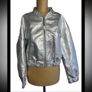 Zara Leather Effect Metallic Bomber Jacket in Silver Size M 1689/220