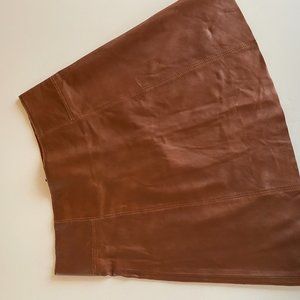 Zara mini skirt in 100% goat leather, medium brown cognac color. The back zips up and can be worn at the waist or higher on the hips with tall boots. An amazing and timeless addition to any fall closet. Please ask if you have any additional questions or would like to see measurements!