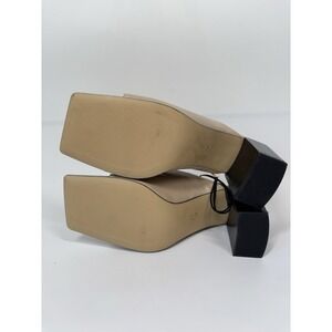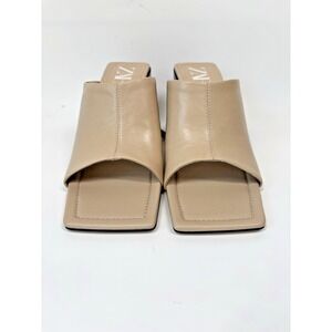 Zara Leather Sandals Womens 40 Beige Tan Heels Mules Squared Toe Slip On 90s Y2K