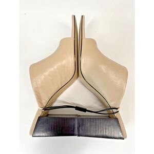 These Zara Leather Sandals are stylish women's heels in size 40, featuring a squared toe design in a beige color. The slip-on style with a high block heel makes them perfect for both party occasions and casual wear in the summer, fall, or spring seasons. The breathable leather upper material and comfortable features ensure a trendy yet comfortable shoe option for the 90s-inspired fashionista looking for a chic sandal option.