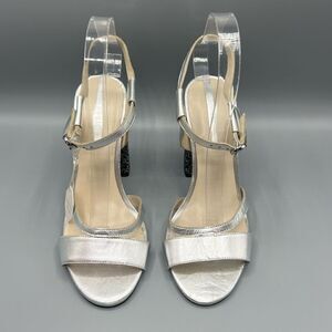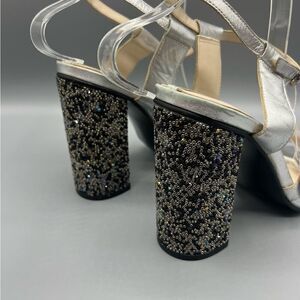 Zara Leather Silver Beaded Block Heels.