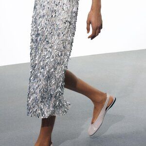 Step into sustainable style with these elegant Zara Leather Slingback Ballet Flats in white. Made from 100% sheep leather with recycled components in the lining and sole, these flats feature a rounded toe, topstitching detail, and an elastic back strap for comfort and fit. Perfect for everyday wear or dressing up casual looks.