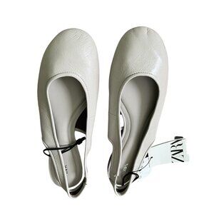 Zara Leather Slingback Ballet Flats White | Eco-Friendly | Sheep Leather Size 9