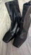 Zara black square-toe heeled leather ankle boots with side zipper closure.