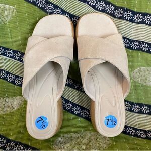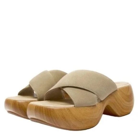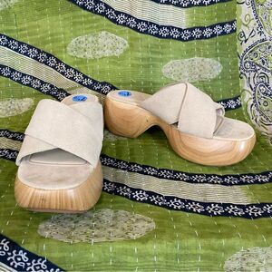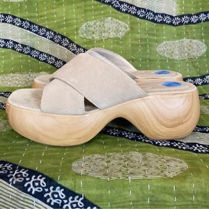 ▪️Condition: Good, worn a couple of times, there are some dings and scuffs along the wood platform as shown in the photos. I bought them from TJ Maxx in this condition
