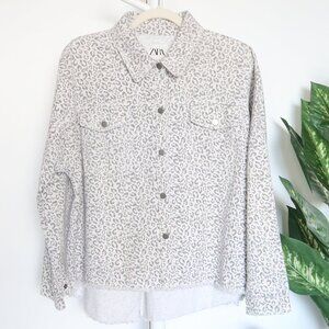 Zara Leopard / Animal Print Long Sleeve Denim Jacket / Long Sleeve Over-Shirt S