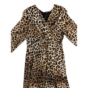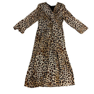 Zara Leopard Animal Print Midi Dress Surplice V-Neck Size Large