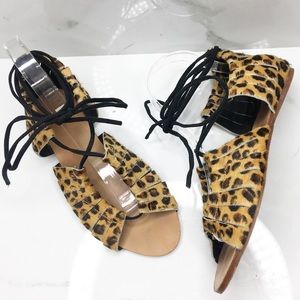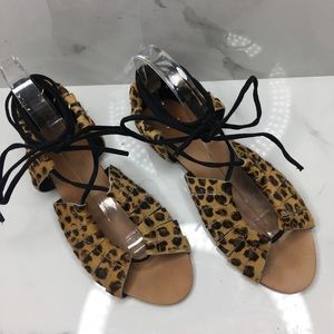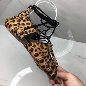 Zara Leopard Faux Fur Strappy Sandals