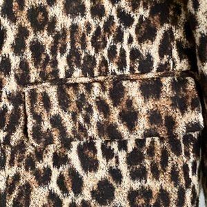 Stylish leopard print blazer. Features a bold pattern. Perfect for a chic look.