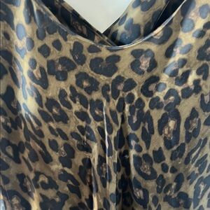 Stylish leopard print maxi dress. Features thin straps. Perfect for any occasion.