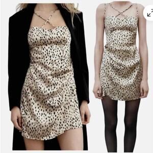 Zara Leopard Print Mini Dress Bustier Ruched Side Double Straps Polyester XS