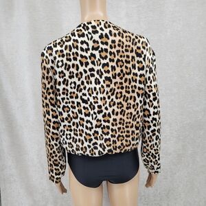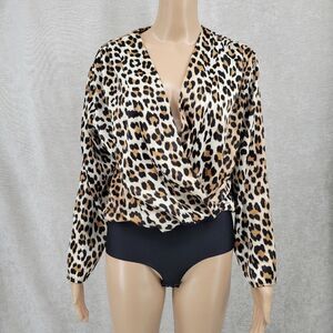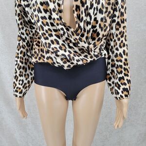 Zara Leopard Print Plunging Neckline Long Sleeve Bodysuit Women's Size Medium