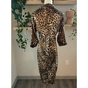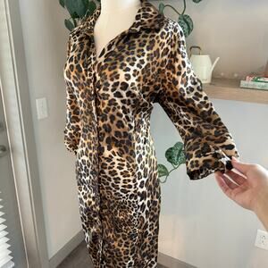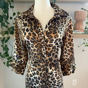 Zara Leopard Print Satin Button Down Midi Cocktail Dress XL Fall Chic Office