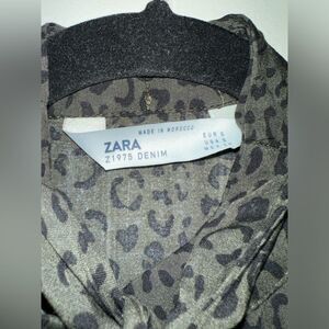 Zara Leopard Print Tie Neck Detail Long Sleeve Button Down Shirt Women's Size S