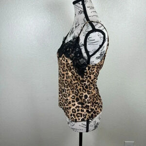 Zara Leopard Spaghetti Strap Camisole Lace Trim Tank Low Back Size Small