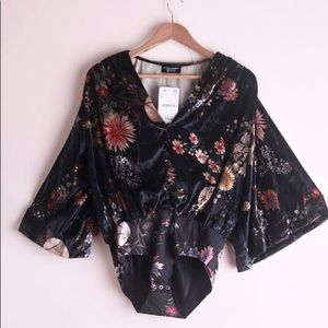 Very cute bohemian velvet top that keeps everything cinched in on the bottom. Brand New Never been worn.