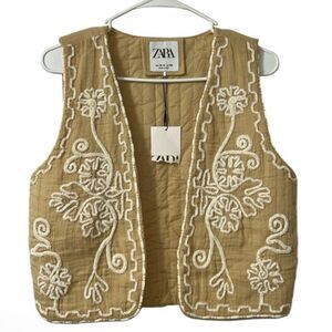 Zara Light Beige Embroidered Girls Cotton Blend Vest.