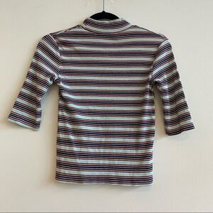 Zara Light Blue Maroon Red Striped Ribbed 1/2 Sleeve Mock Neck Size Small