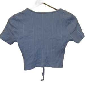 Zara Light Blue Ribbed V-Neck Short Sleeve Crop Top with Front Tie Detail Size L