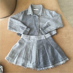 Chic light gray jacket with textured fabric. Features button detail and soft lining.