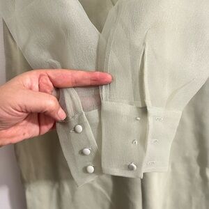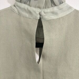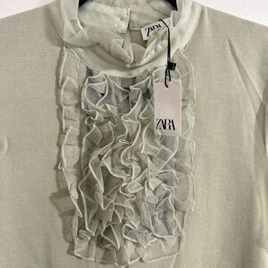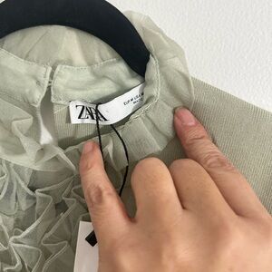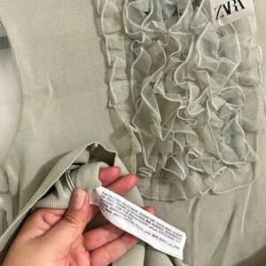 New. Zara Women's Sheer Long Sleeve Ruffle Neck Dress, Sage Green, Size M.