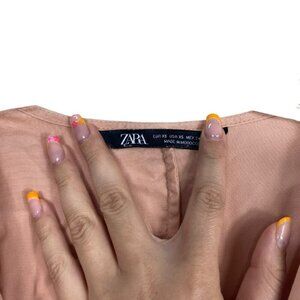 Zara Light Pink Button Tie Waist T Shirt Dress XSmall