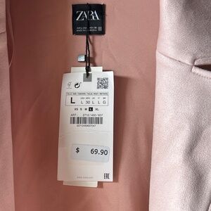 Zara Light Pink Faux Suede Long Line Coat Large Women