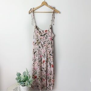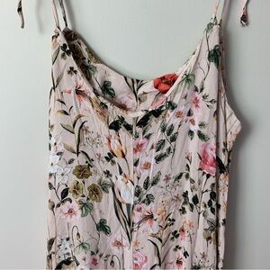 [Zara] Light Pink Floral Print Adjustable Tie Shoulder Sleeveless Jumpsuit