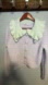 Elegant light purple cardigan with ruffled collar. Button-up design. Perfect for layering.