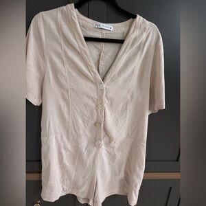 Zara Light Tan V-Neck Linen Cotton Romper • Small