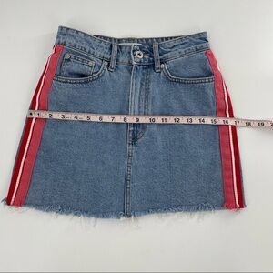 Zara Light Wash Denim Jean Mini Skirt Red Stripe