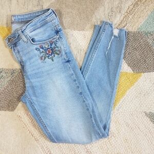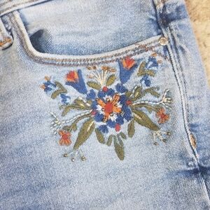 Zara Light Wash Distressed Floral Embroidered Jean