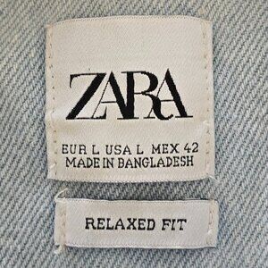 Zara shacket, size large. Shirt jacket. Light wash denim. Distressed. Relaxed fit. Long sleeves with snaps. Snap button-up front. Two front snap button patch pockets. Frayed hem. 100% Cotton. Casual. Streetwear. Outdoor. Cold weather. Spring. Fall. Winter. Soft. Western. Cowgirl. Coastal Cowgirl. Boho.