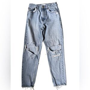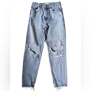 Zara Light Wash Very Distressed 100% Ecologically Grown Cotton Jeans (Size: 4)