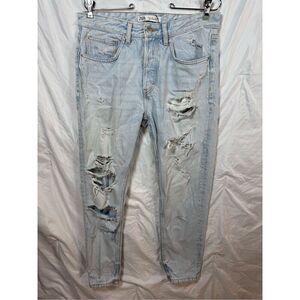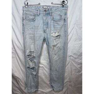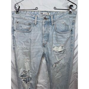 Add some edge to your denim collection with these Zara Light Wash Distressed Jeans in size USA 31. Featuring a classic distressed look, these jeans are perfect for a casual, laid-back vibe with plenty of style.