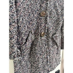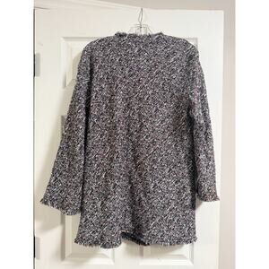 The Zara Lightweight Multicolor tweed jacket in size S is a stylish and versatile outerwear option for women. Made from breathable tweed fabric, this jacket is perfect for layering in the spring or summer seasons. With a basic jacket style and a colorful tweed pattern, it adds a pop of style to any outfit. The lightweight design makes it comfortable and easy to wear, making it a great addition to any wardrobe.