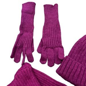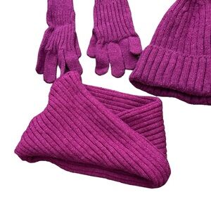 Zara | Like new Magenta ribbed knit hat/gloves/cowl set