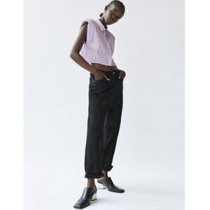 Zara Lilac Gingham Shoulder Pad Cropped Blouse Size S