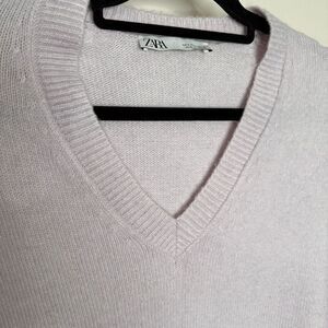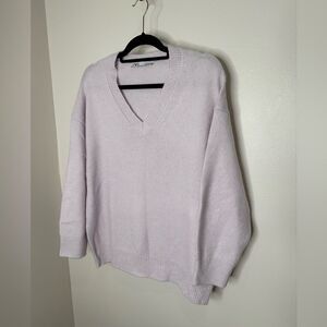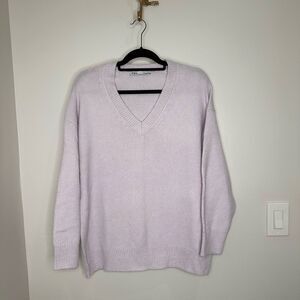 Zara oversized soft knit Chic V-neck sweater in light purple/ lilac. Ideal for casual wear. Super soft and cozy. Perfect for upcoming season. Size small. Boxy fit. Measurements 21" pit to pit 25" length. Excellent condition