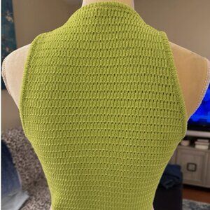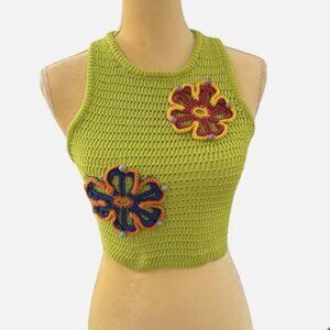 Zara Lime Green Floral Crocheted Vest Sz S Preppy Spring Colorful Bright Peasant